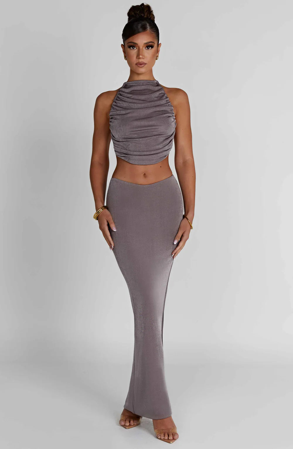 Introducing our Premium High Shine Jersey Maxi Skirt, designed for luxury and style. Featuring a low waist and body-hugging fit, this skirt accentuates your curves with a sleek silhouette. Perfect for formal events or casual outings, it offers effortless chic for any occasion.