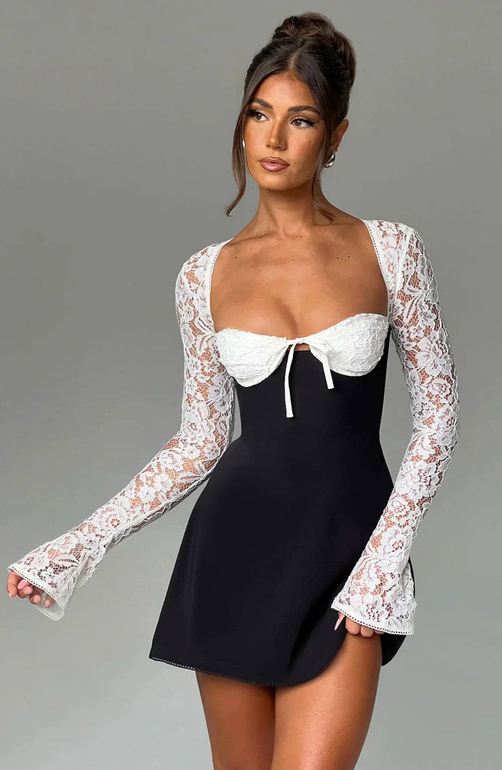 LIZA LACE MINI DRESS - BLACK/WHITE